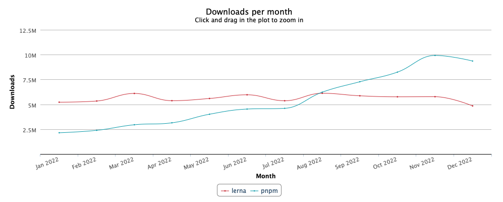 pnpm se descargó más de 5 veces más en 2022 que en 2021: