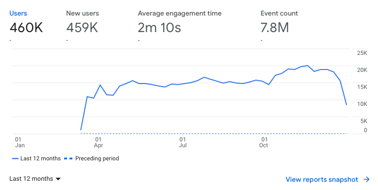 Raccogliamo alcune statistiche non personalizzate dai nostri documenti utilizzando Google Analytics. Nel 2022, a volte abbiamo avuto più di 20.000 visitatori unici a settimana. Questo è 10 volte di più rispetto al 2021!