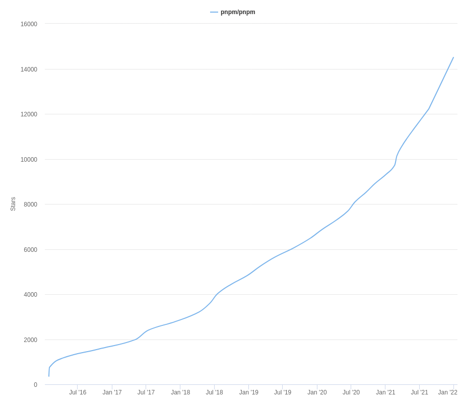 이 통계는 pnpm이 설치될 수 있는 모든 다양한 방법을 측정하지도 않습니다! 그들은 단지 pnpm npm 패키지의 다운로드만 측정합니다. 올해 우리는 또한 pnpm의 컴파일 된 바이너리 버전을 추가하며 이는 다른식으로 출하됩니다.