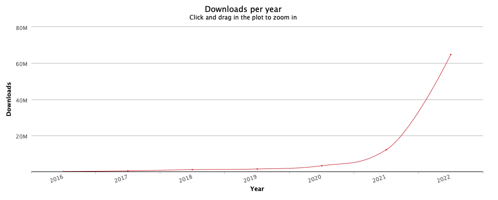 pnpm was downloaded more than 5 times more in 2022 than in 2021: